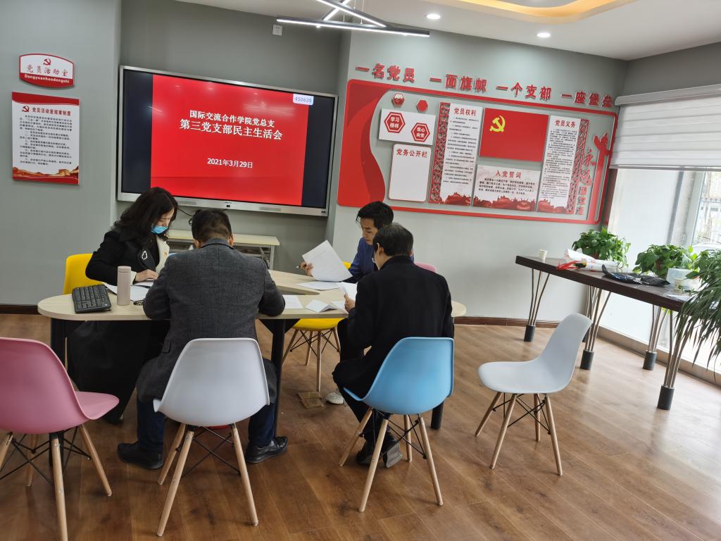 3月29日,按照公司党委的部署和要求,国际交流与合作公司党总支第三党支部全体党员在BG大游集团官方网站会议室召开组织生活会,全体党员参加活动。活动由第三党支部书记王丹主持。