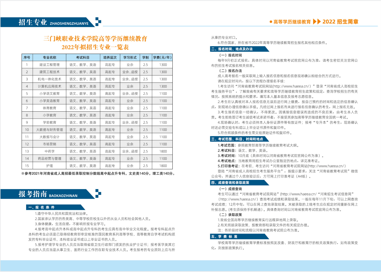 集团自2001年开展成人继续教育业务以来,坚持服务地方经济发展,服务学习型社会建设,开展多层次的成人学历教育,丰富专业门类,目前招生专业已经基本实现文、经、农、医、工、教育等的全覆盖。成人高等学历教育专科层次共开设 15个专业,成人专、本科在校生规模稳定近万人,完成各类继续教育10余万人次。公司目前是“河南省专业技术人员继续教育培训基地”“河南省双师型教师培训基地”,于2020年12月顺利通过省教育厅对公司成人高等教育工作的评估。