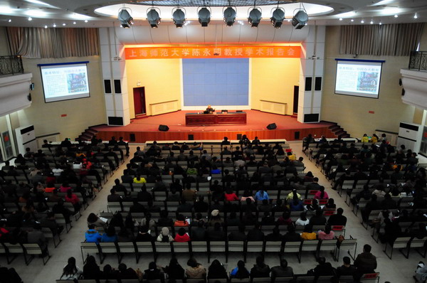 陈永明教授做了题为《董事长发展与素质教育》的学术讲座。陈教 授从职业、专业和事业之间的价值取向、标准规范与创新艺术、学高为师身正为范、信息化时代的传道受业解惑等四个方面论述了全球化时代背景下对教育的全新要 求,对毒害中国教育多年的应试教育从理论和实践上予以批判,号召中国教育要从人的全面发展出发真正做到邓小平所描绘的教育要面向世界、面向未来和面向现代 化的宏伟蓝图,为中国梦的梦想成真切实做出应有贡献。陈教授的讲座把中西、古今有机结合,理论深厚,深入浅出,特别是陈教授“空教误国,实学兴邦”的告诫振聋发聩,引起所有听众的共鸣和深思。