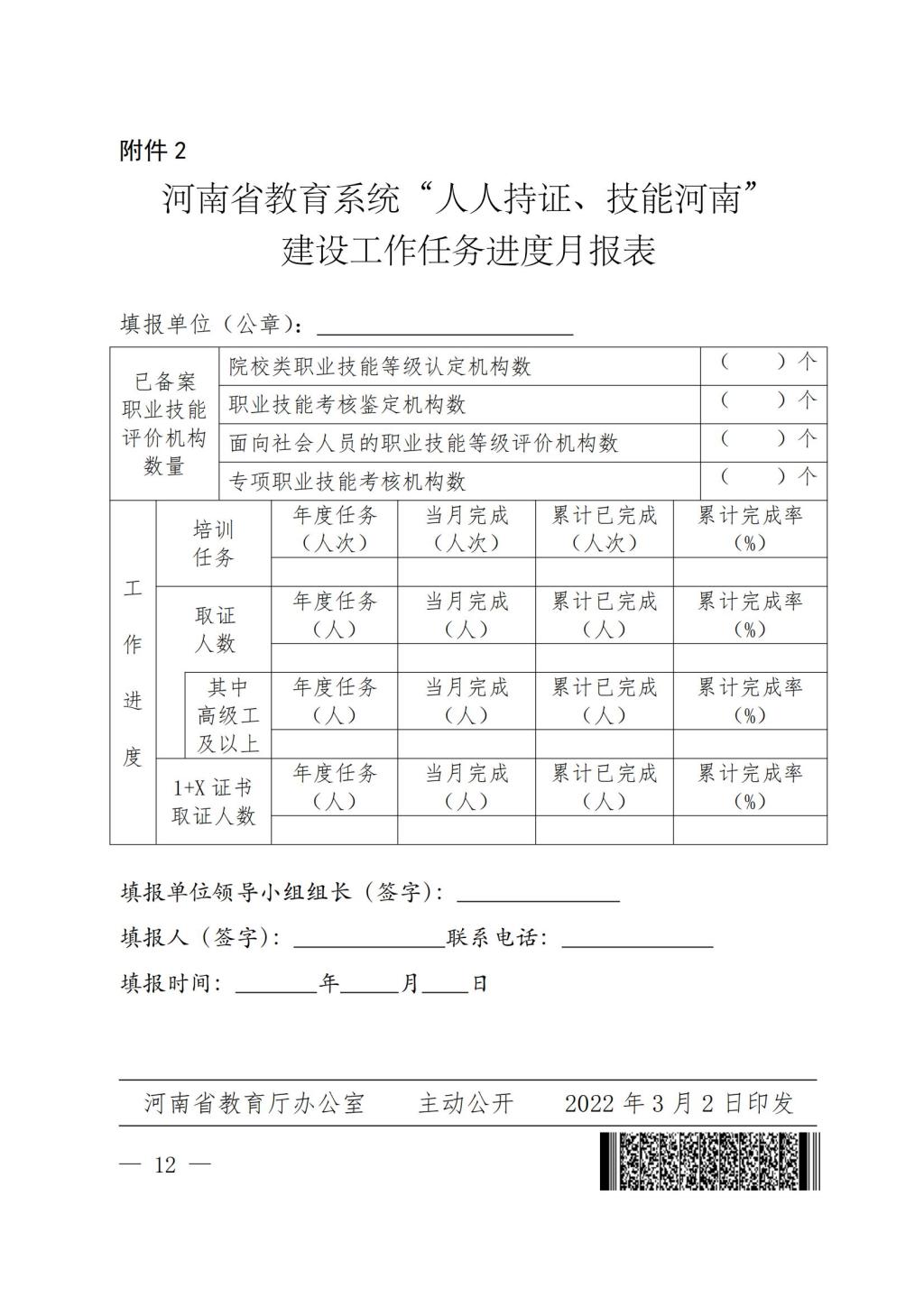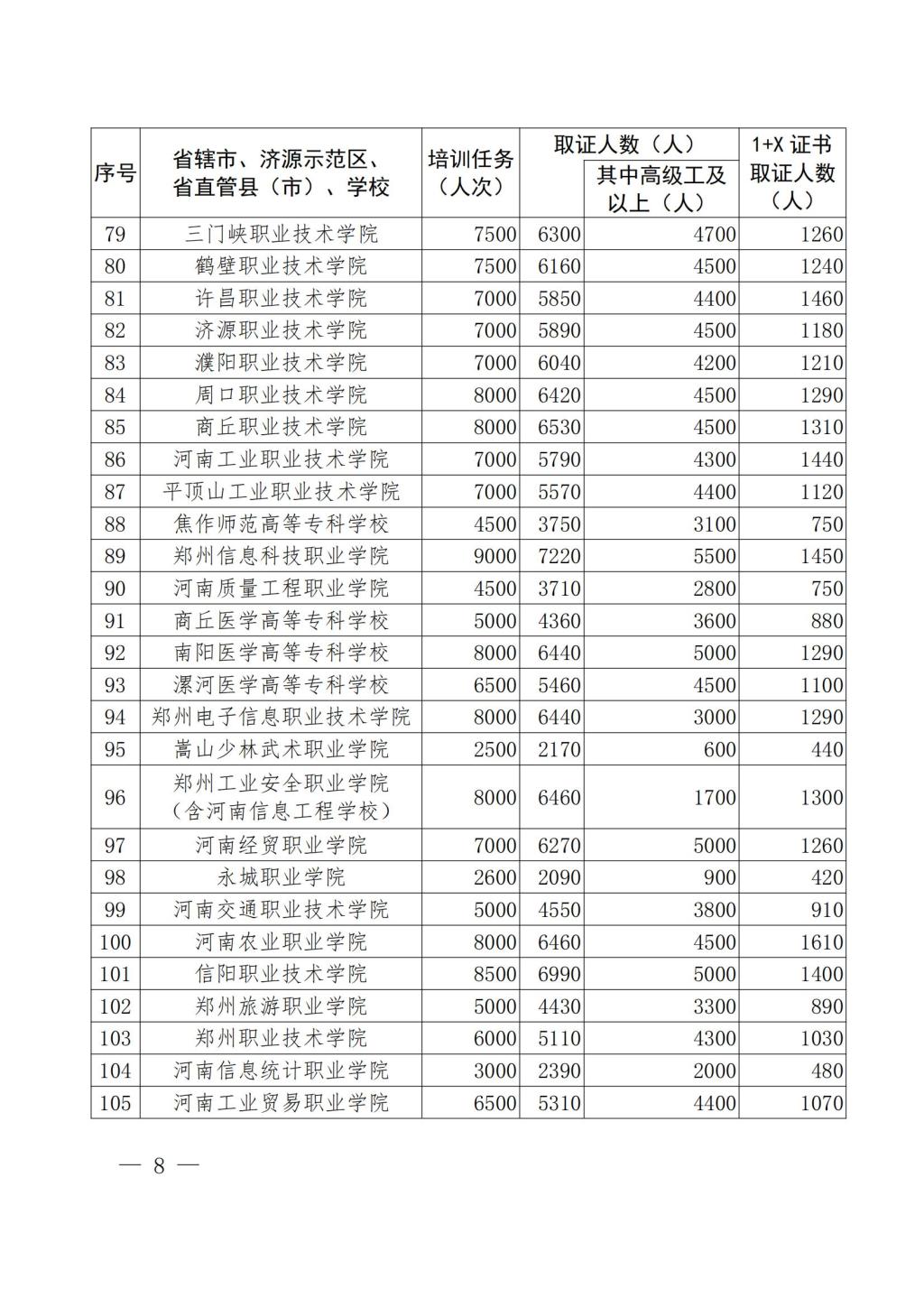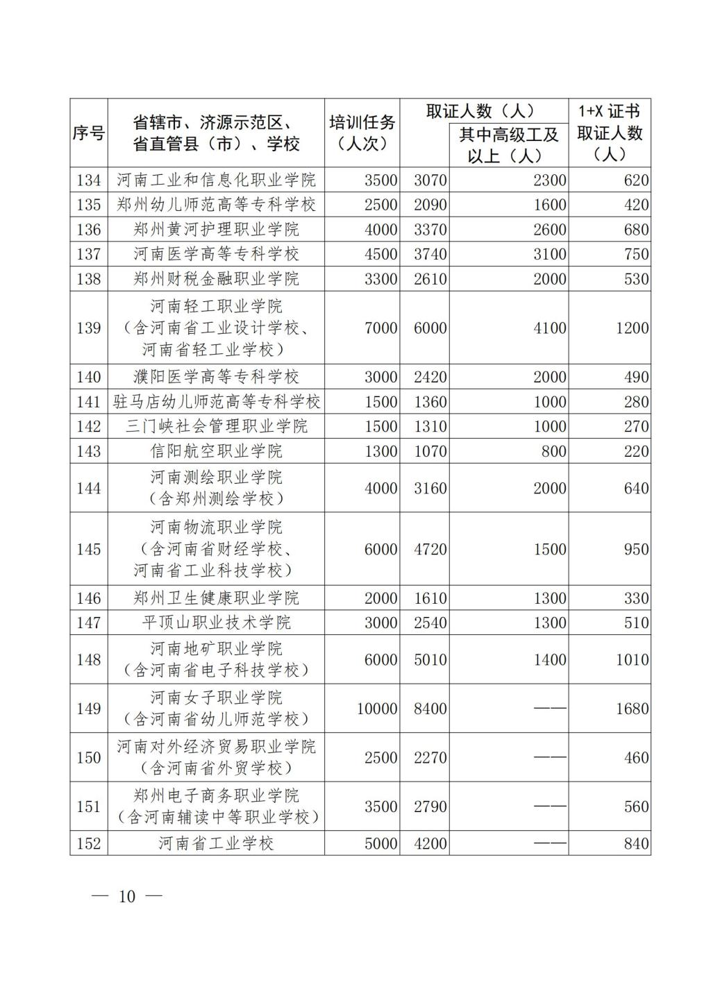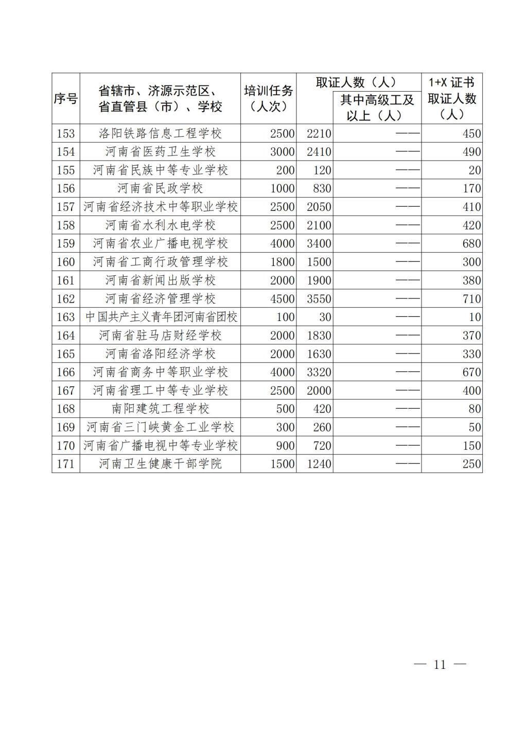 教办职成〔2022〕50号-河南省教育厅办公室 关于下达2022年教育系统落实“人人持证、技能河南”建设工作任务的通知