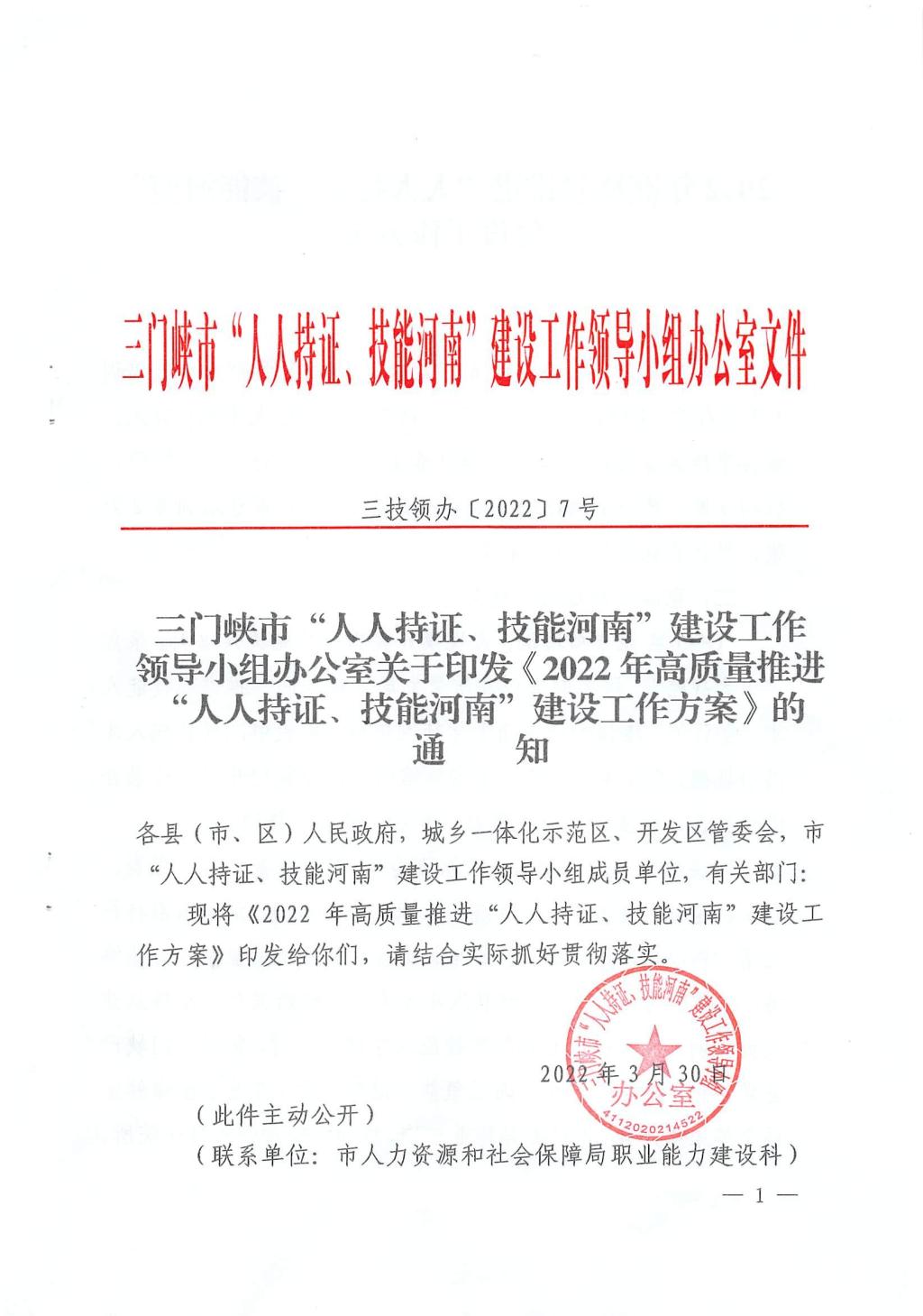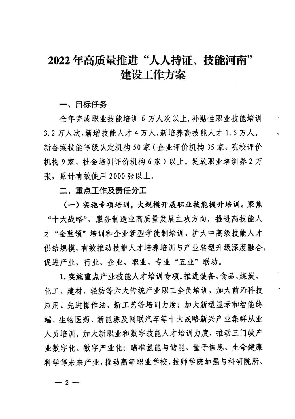 关于印发《2022年高质量推进“人人持证、技能河南”建设工作方案》的通知